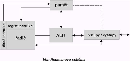 2. Nakreslite von Neumanovu schému počítača a popíšte jej jednotlivé časti.